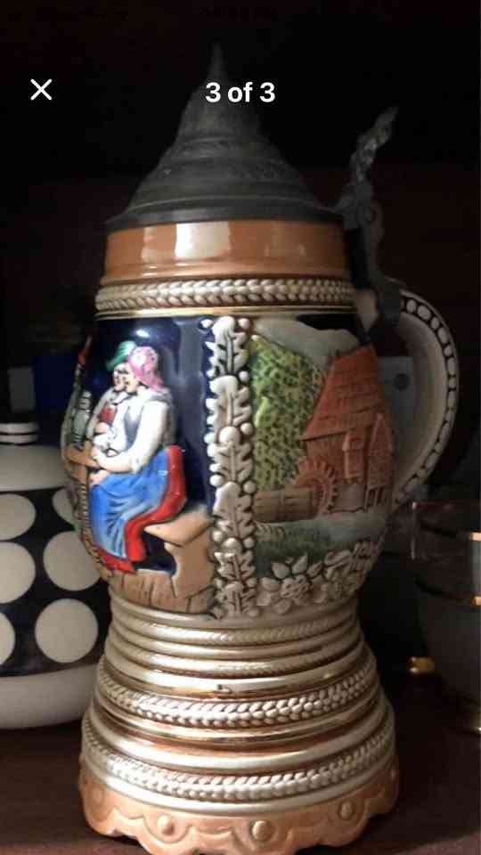 Musical Vintage German beer stein with pewter lid