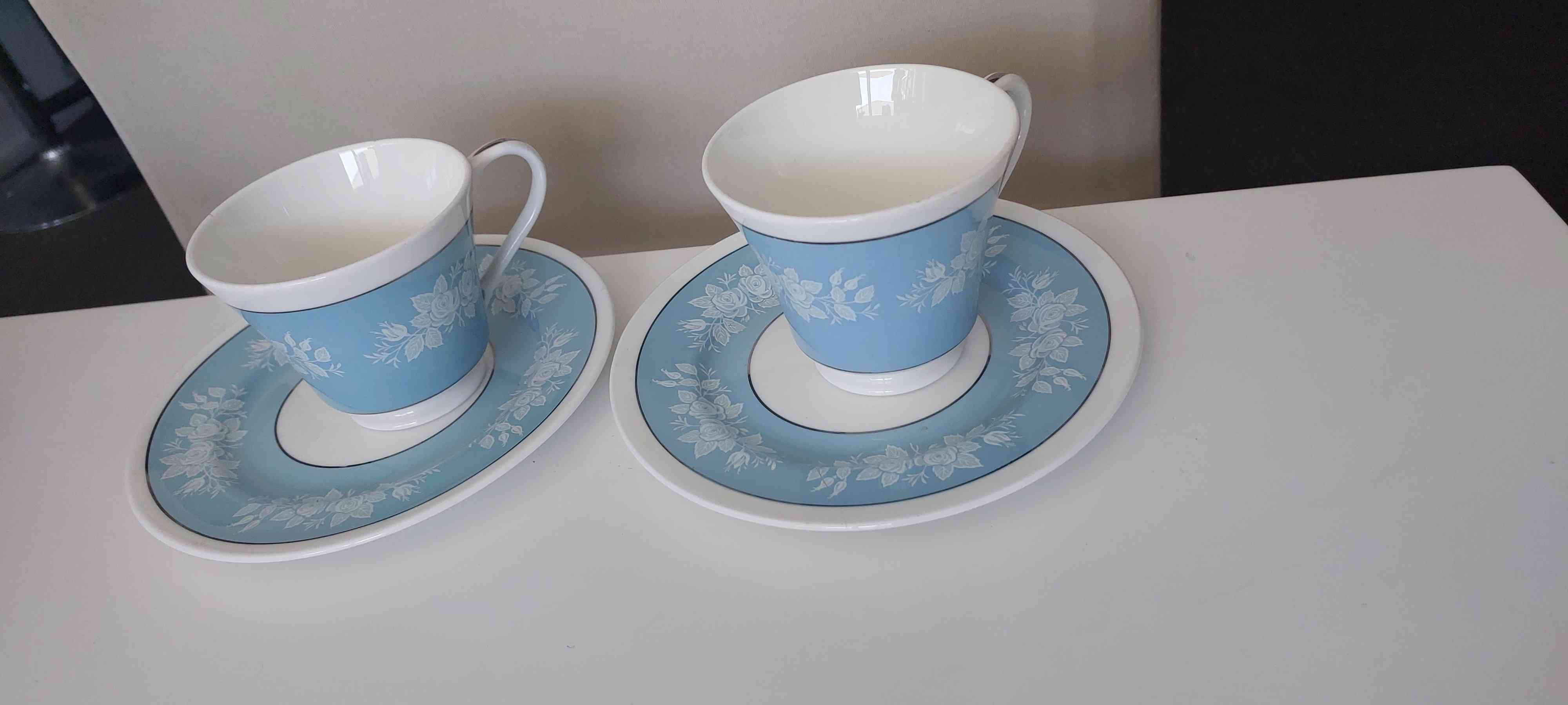 Beutiful Blue Aynsley Tea Cup & Saucer Set With White Roses, made in England
