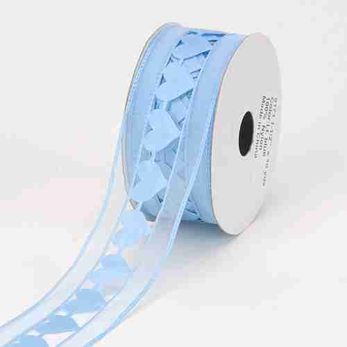 Satin Hearts on Organza Ribbon - 3.81cm x 9.14 metres - Blue